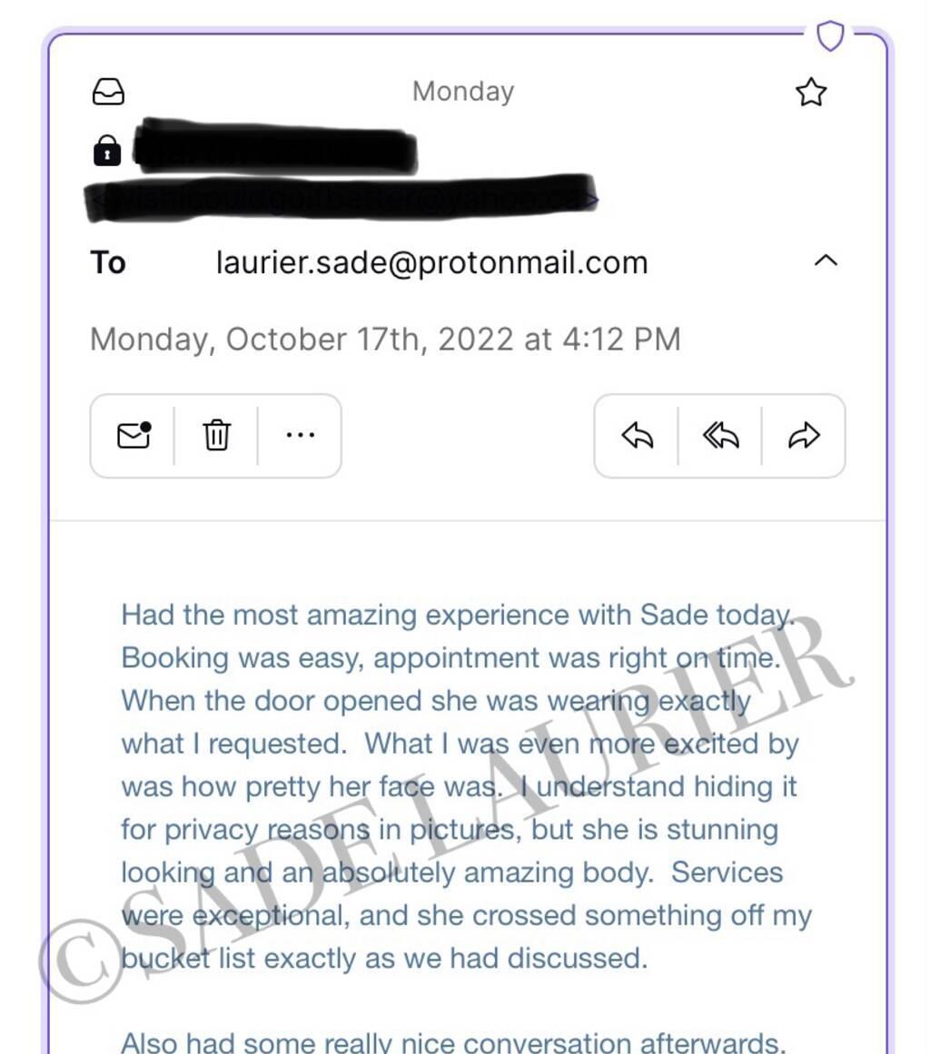 Posted: Feb 13 18:34:17 2023Well hello gentlemen, My name is Sade Laurier, I'm a gorgeous upscale independent companion. I provide a relaxed environment where you can unleash all of your fantasies. Please read website for all other information