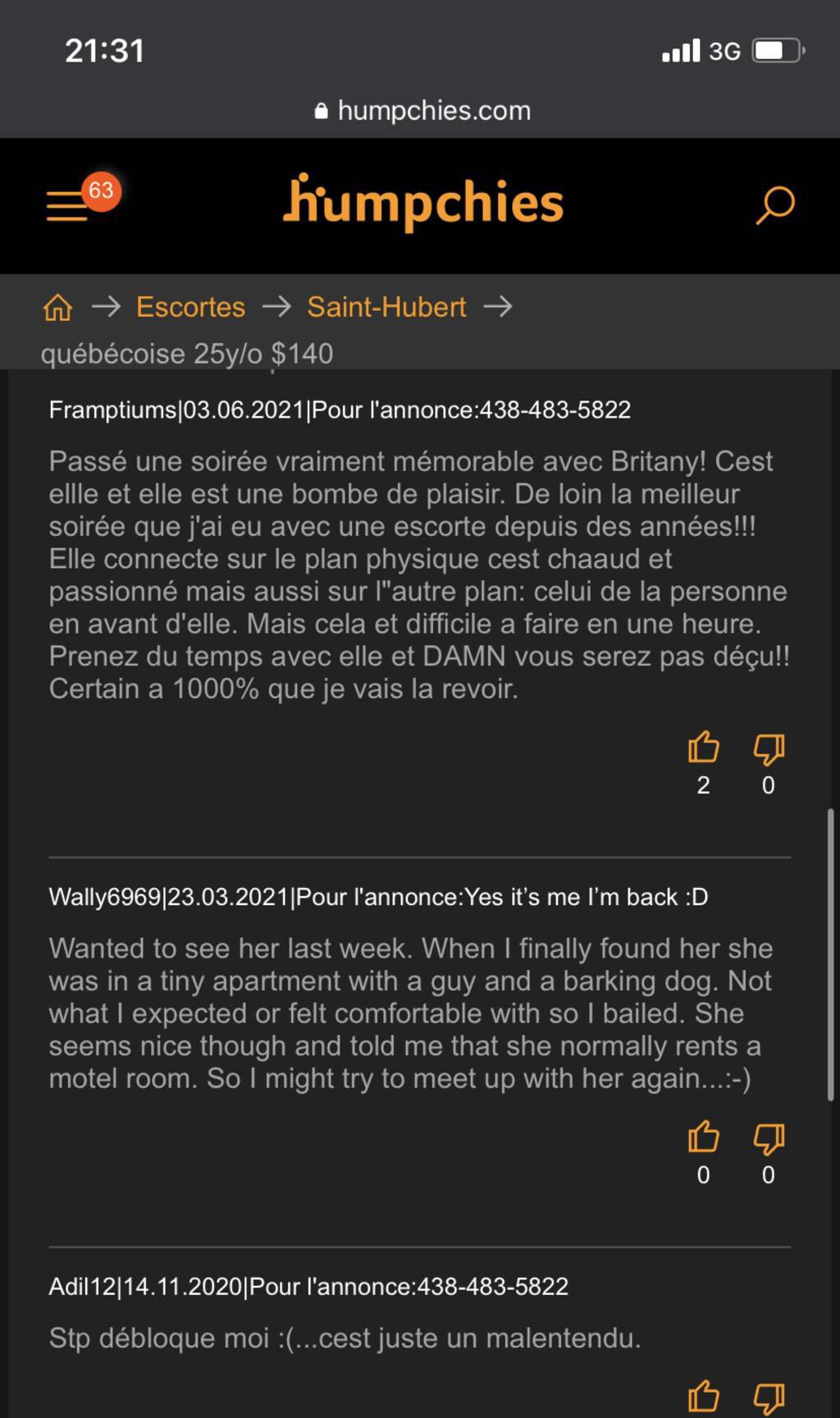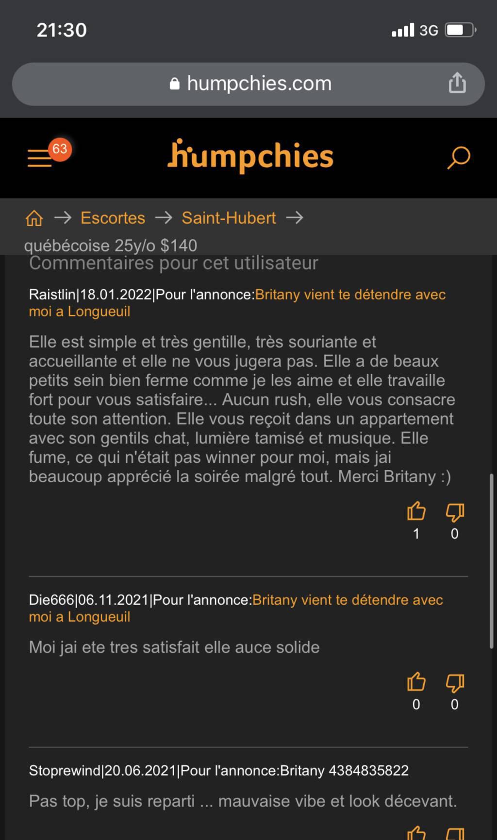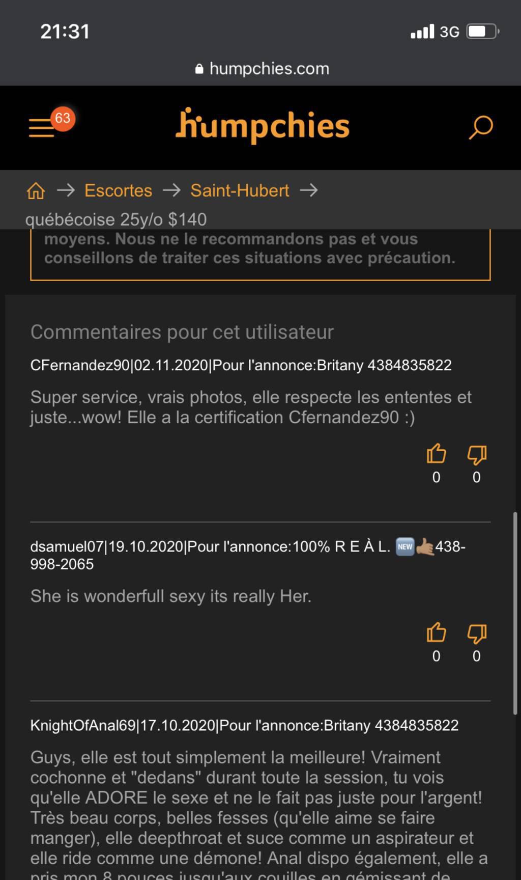 Je suis Britany , j’ai les yeux pairs, 5"4 avec un corp de vrai femme ou les courbes sont a la bonne place .Je suis très chaleureuse, super levres pulpeuse avec de beau seins rond et ferme ainsi que de belle fesse bombée , peau douce et chaude .